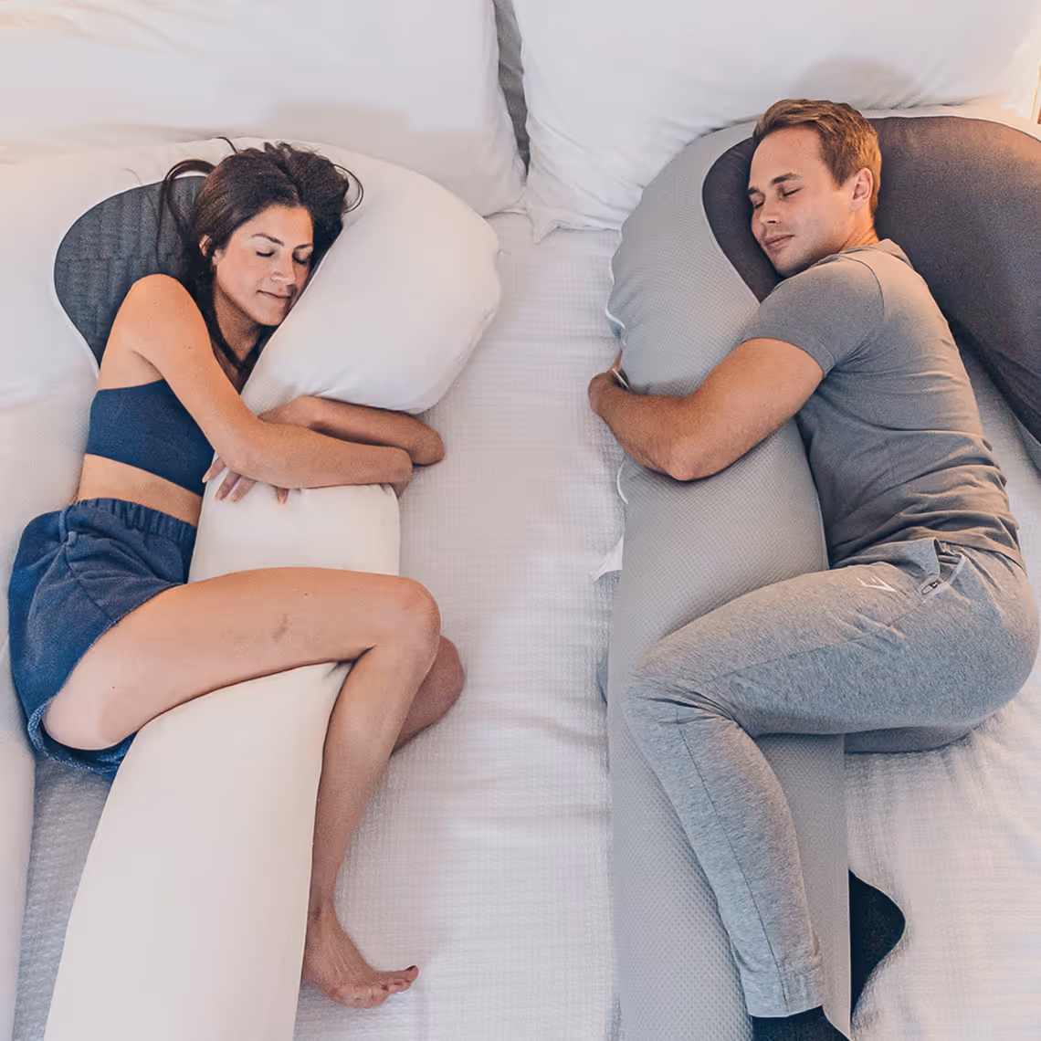 Side sleepers make up 70% of the population, yet most pillows are designed for back sleepers. The Hugl™ is perfect for side sleepers, providing ideal support from head to toe. The U-shaped design cradles both sides of your body, eliminating the need for multiple pillows that shift during the night.